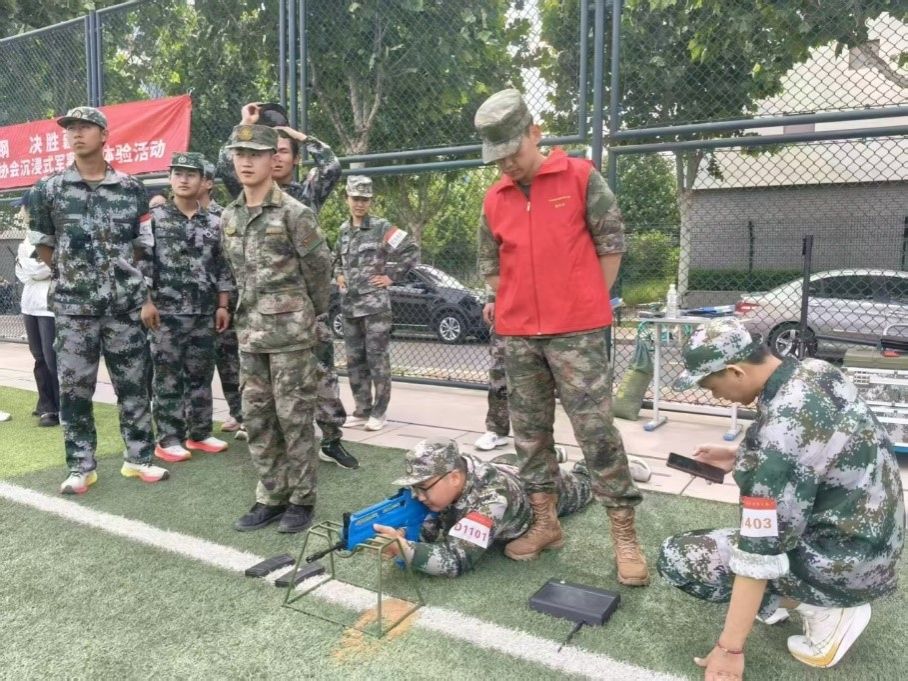 活动现场,基础部党总支书记张娜、主任姜涛,河北广播电视台常驻军事教官、中国大学生国防体育竞赛裁判长杨佩玉莅临现场观摩并指导活动。24名参赛学生分成8个小组,在退役军人大学生的裁判指导下,围绕激光枪射击、手榴弹投准、战场应急救护、定向越野及无人机穿越障碍五大实战项目,展开了一场特殊的军事技能大比拼。
