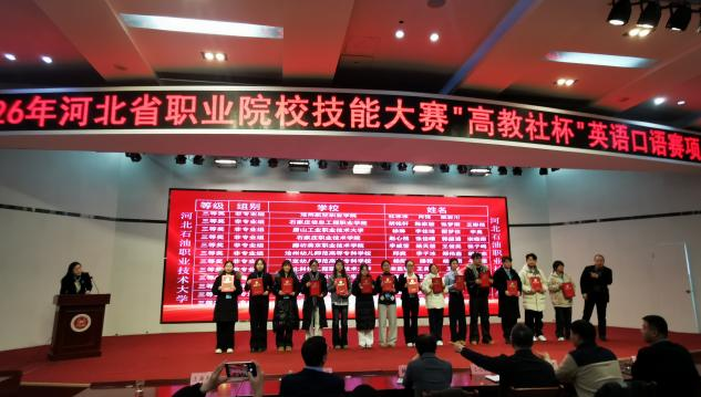 近日,2026年河北省职业院校技能大赛“高教社杯”英语口语赛项在河北石油职业技术大学圆满落幕,beat365张梦雨、王彬然、胡明轩、陈家骏四位同学组成的参赛团队表现优异,凭借出色的英语应用能力和稳定的现场发挥,荣获大赛(高职非专业组)三等奖。