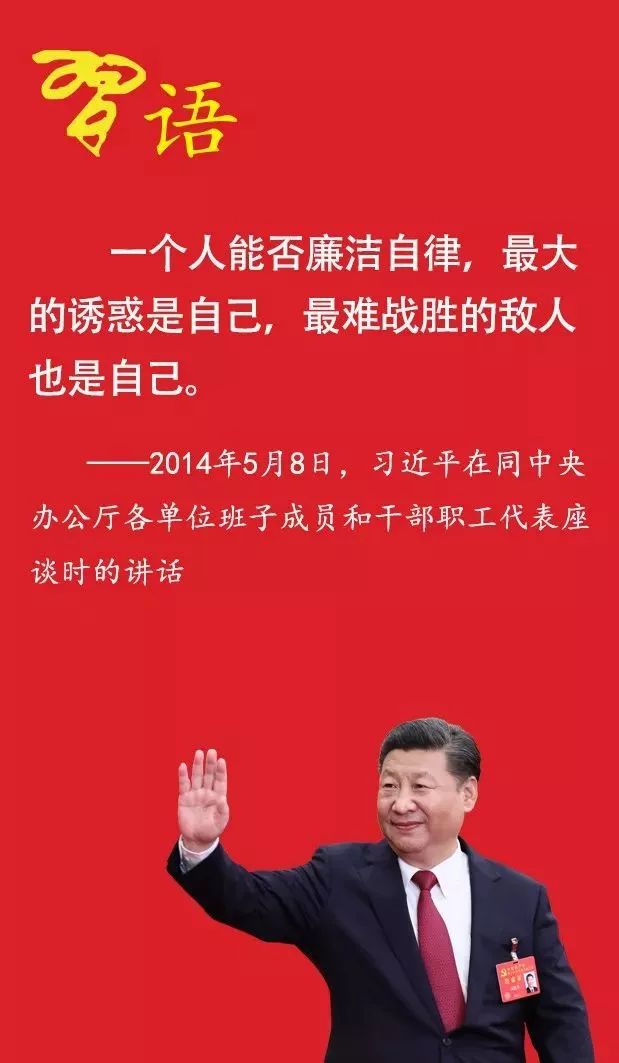 党的十八大以来,习近平总书记站在党和国家工作全局的高度,全面推进党的建设,坚持全面从严治党,发表了一系列重要论述,深刻阐释了党风廉政建设和反腐败斗争的重大理论问题和实践问题,为新形势下深入推进党风廉政建设和反腐败斗争提供了思想武器和行动指南。今天,小编和您一起学习近平总书记的部分廉政警句。