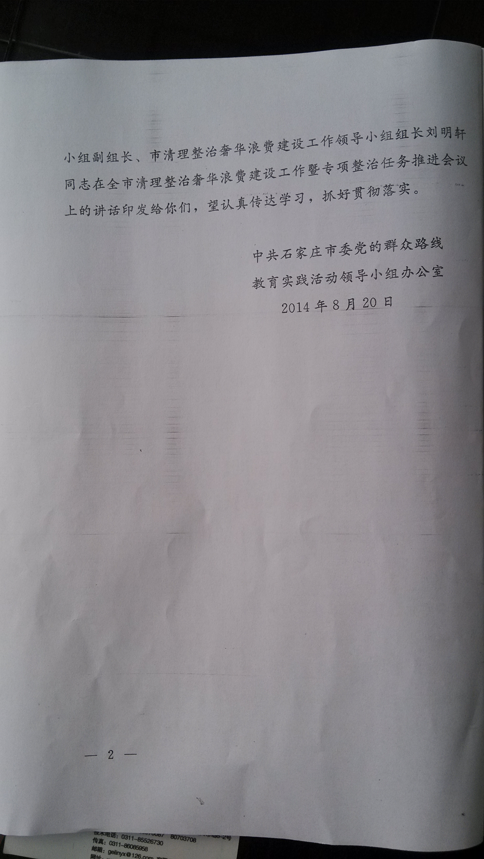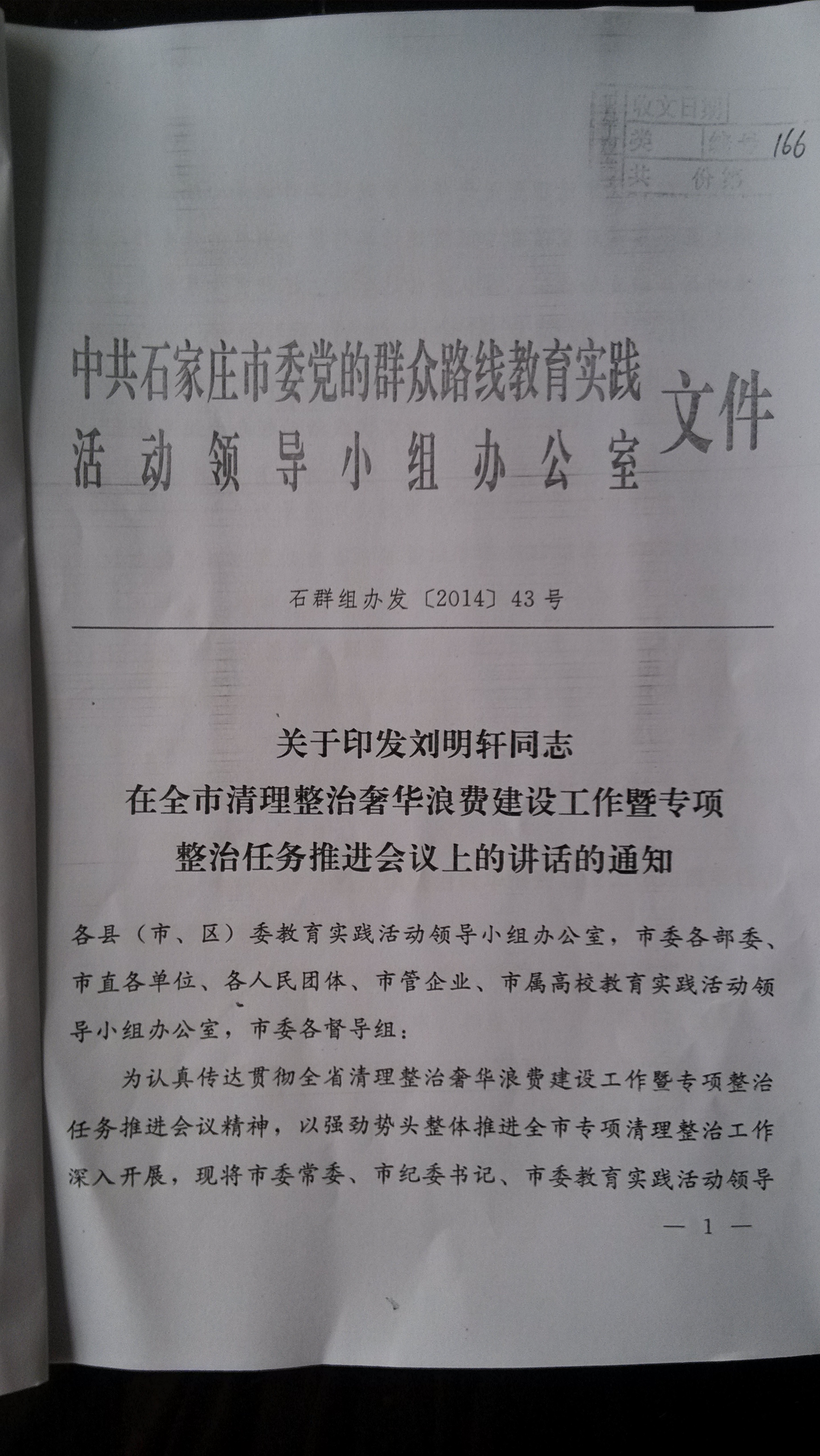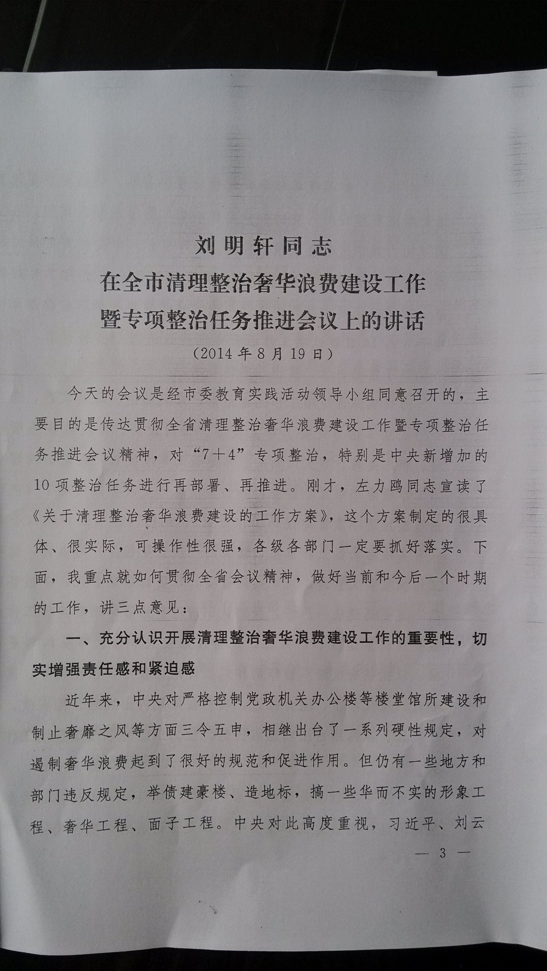 关于印发刘明轩同志在全市清理整治奢华浪费建设工作暨专项整治任务推进会议上的讲话的通知