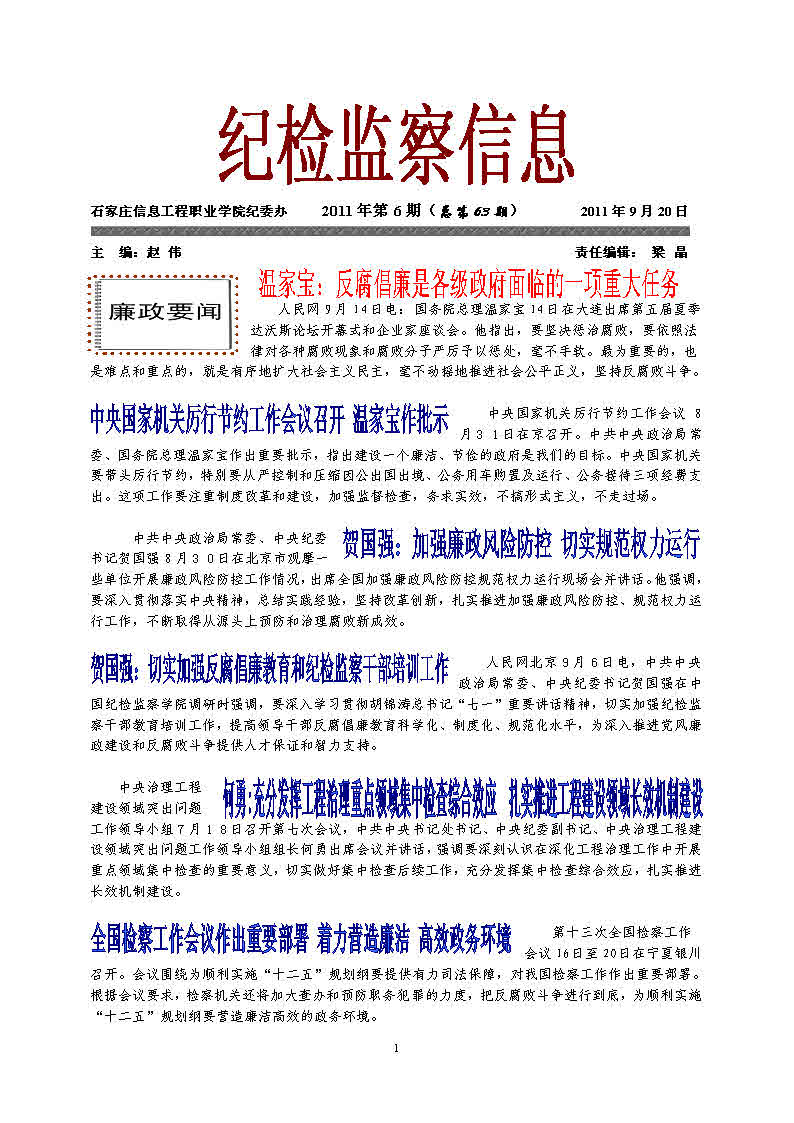 2011年06期纪检监察信息