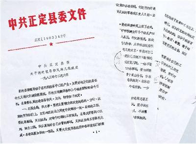 1983年12月6日,正定县委印发改进领导作风“六项规定”。 (资料图片)