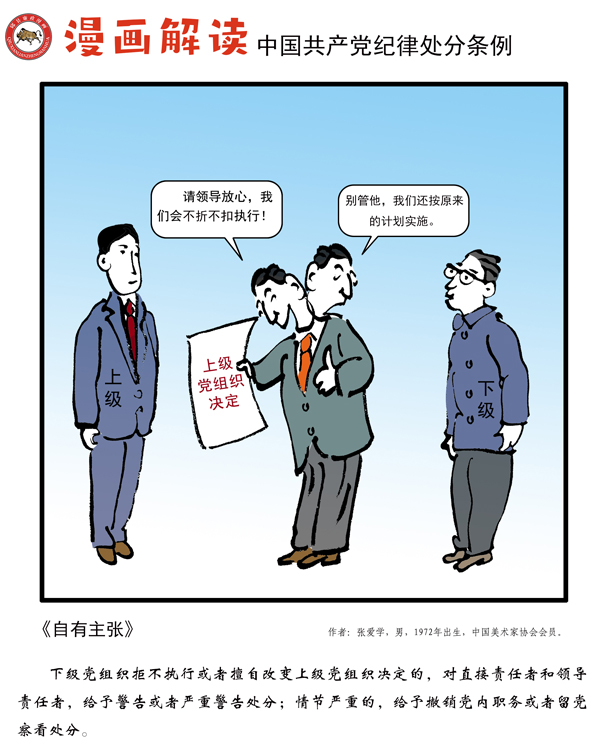 编者按:纪律是我们党的生命线,加强纪律建设是全面从严治党的治本之策。为深入贯彻落实十九届中央纪委四次全会关于加强党纪国法教育的部署要求,强化党规党纪的学习宣传、贯彻执行,使铁的纪律真正转化为党员干部的日常习惯和自觉遵循,中央纪委国家监委网站联合河北省纪委监委,以漫画形式对《中国共产党纪律处分条例》进行解读,陆续连载刊发,敬请关注。