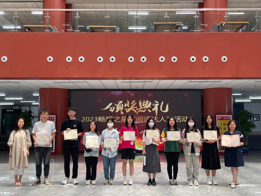 2023年6月14日中午,图书馆在二楼大厅举办了“畅想之星”好书共读活动颁奖仪式。近400名学院师生参加了此次图书馆读书月“畅想畅读·阅见美好”主题线上好书共读活动,9名师生脱颖而出,分别荣获“阅读达人”一、二、三等奖。