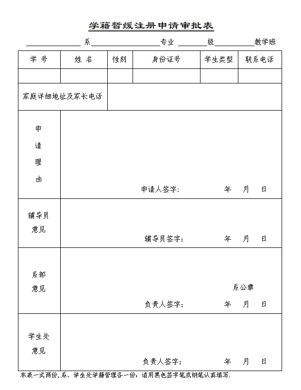 学籍暂缓注册申请审批表