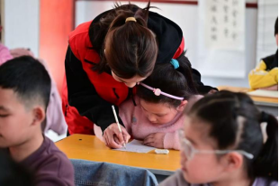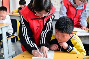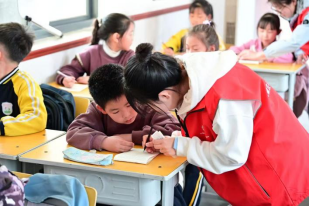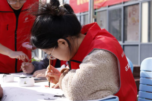 在硬笔书法教学环节,书法社的成员们首先向小学生们传授了硬笔执笔的口诀:“一压二抵三钩四靠五捏,指实掌虚腕灵活。”他们一边讲解,一边示范正确的握笔姿势,引导学生们掌握正确的执笔方法。接着,书法社的成员们带领学生们进行情景化练习,从硬笔书法的基本笔画——横、竖、撇、捺、点开始,一笔一画地教学生们书写。他们手把手地指导,纠正学生们不规范的笔画,让孩子们在实践中掌握书法的基本技巧。