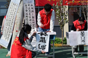 与此同时,还有部分小学生们在书法社志愿者的组织下,领取现场书写的书签,欣赏着飘逸的书法作品,爱不释手。