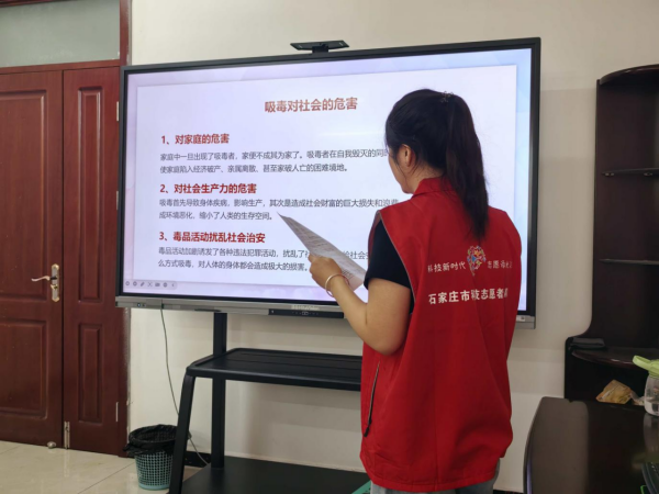 宣讲环节,志愿者结合图文并茂的课件,系统讲解了毒品的分类与危害。从传统毒品到伪装成“电子烟”“糖果”“邮票”等形态的新型毒品,通过实物图片对比和真实案例剖析,生动揭示了毒品对个人身心、家庭幸福和社会稳定的严重危害。志愿者特别强调,“一次好奇可能毁掉一生”,呼吁同学们坚决抵制诱惑,远离毒品侵害。
