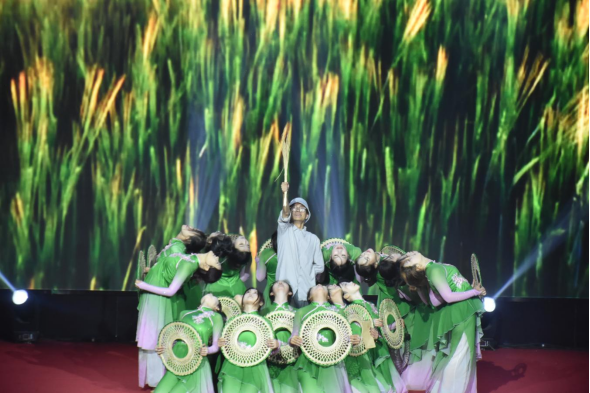 开场舞《再续禾下梦》由大学生艺术团倾情演绎,演员们以富有张力的肢体语言,展现新时代青年对梦想的执着追求与对祖国的深情礼赞,为整场赛事奠定了“青春心向党,奋斗正当时”的昂扬基调。